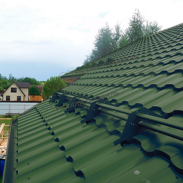 Это многослойное полимерное покрытие на основе полиуретана, разработанное для экстремальных условий. Оно включает цинковый слой для антикоррозионной защиты, грунтовку и финишный слой с добавлением полиамидных гранул. Толщина покрытия достигает 50 мкм, что гарантирует устойчивость к царапинам, УФ-излучению и химическим веществам. В оттенке RAL 6005 оно имитирует естественный мох, придавая крыше экологичный вид. Покрытие не выцветает со временем и сохраняет блеск даже после многих лет эксплуатации.